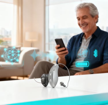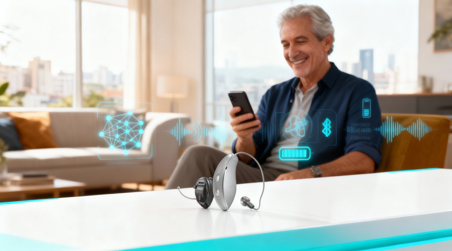 Descubra os melhores recursos de aparelhos auditivos em 2026: Inteligência Artificial, Auracast, bateria de 51 horas, design invisível e atendimento remoto. Tecnologia avançada para o seu conforto.